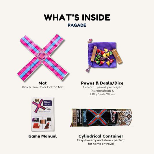 Pagade – Classic Indian Board Game in 4 Colors | Traditional Pachisi (Parcheesi) Set
