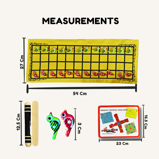 Chowka Bara 7 Houses Traditional Indian Board Game | Handmade Mat & Channapatna Pawns
