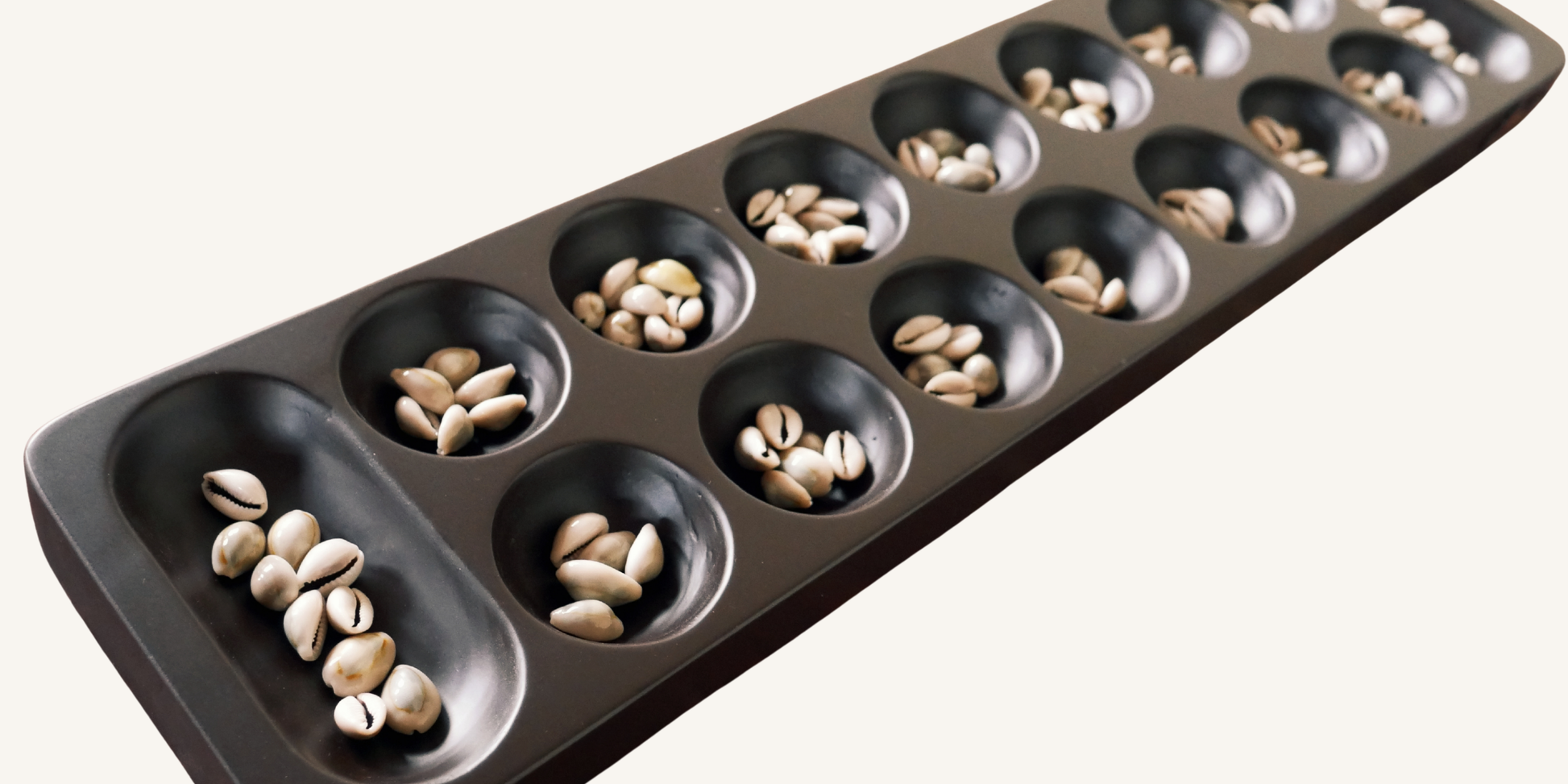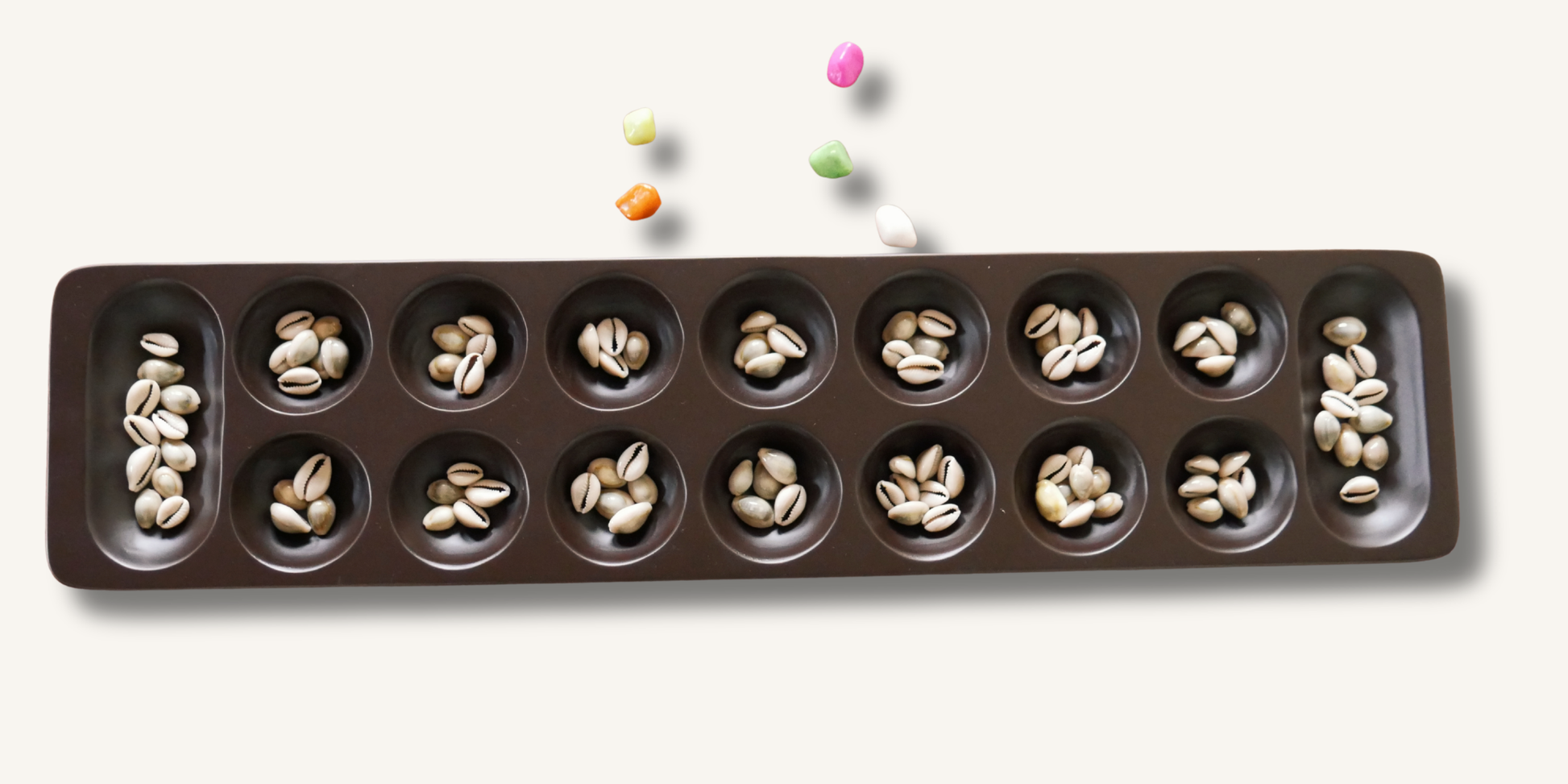 • The two large pits on either side store captured pieces, making it easier to track the score.