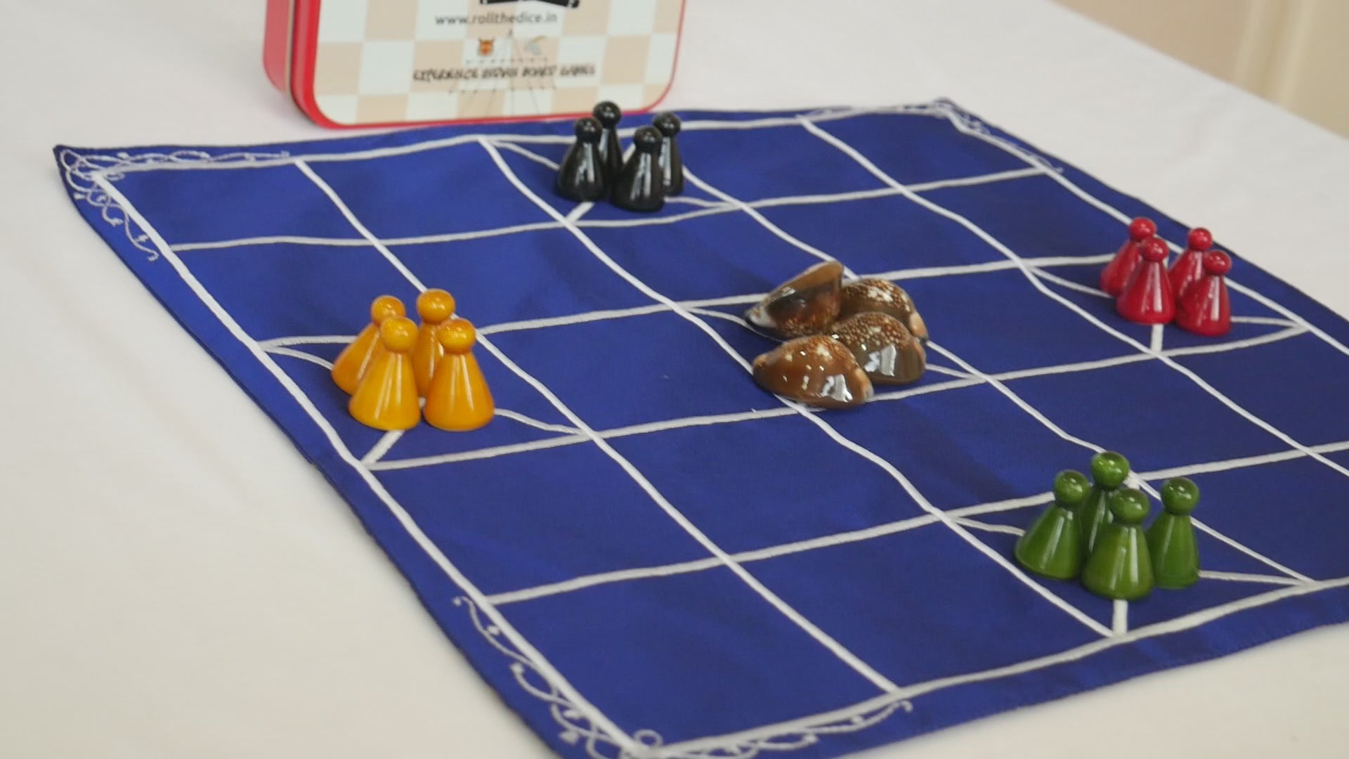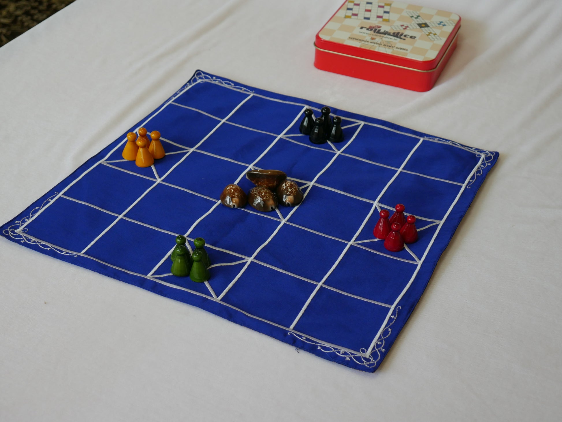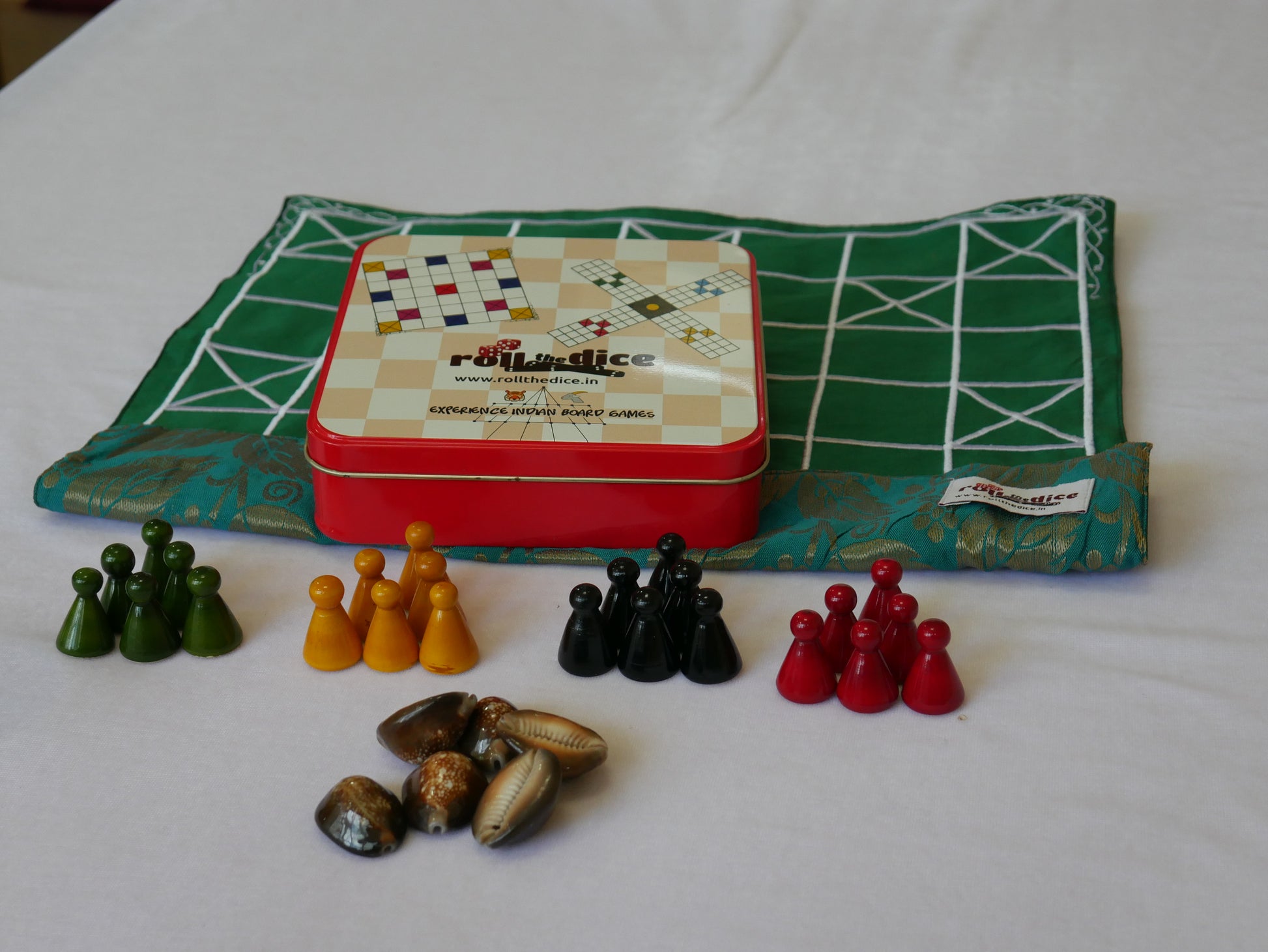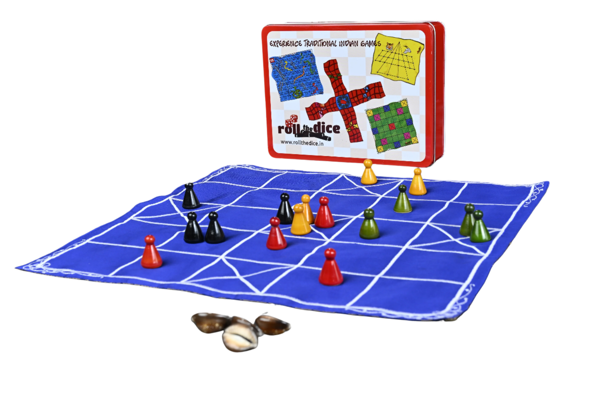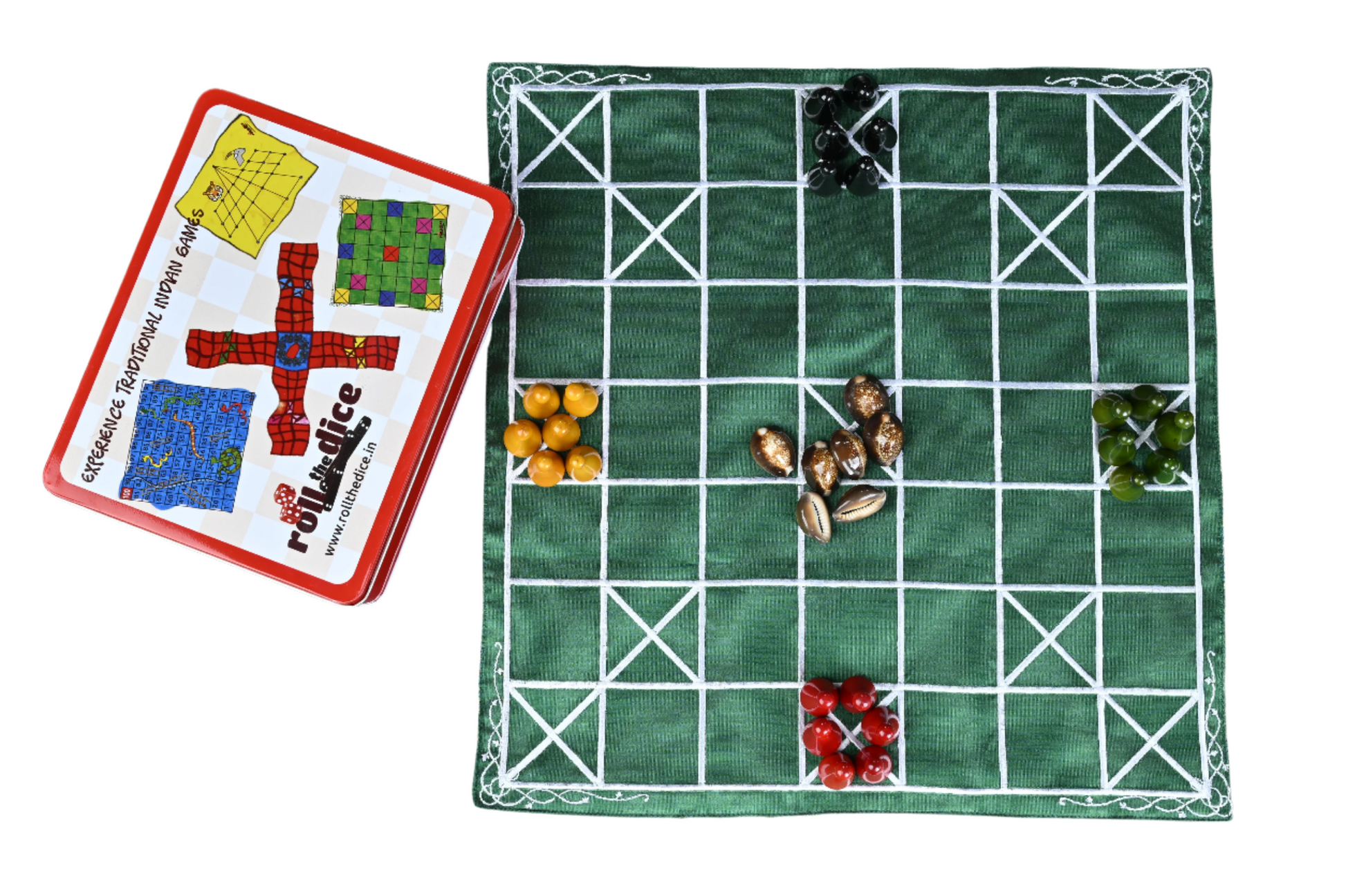 RolltheDice ನ 5+7 ಕಾಂಬೊ ಸೆಟ್ನಲ್ಲಿ ಉತ್ತಮ ಗುಣಮಟ್ಟದ ರೇಷ್ಮೆ ಬಟ್ಟೆಯಿಂದ ಮಾಡಿದ 5 ಮತ್ತು 7 ಮನೆಗಳ ಹಾಸುಗಳು, ಬಾಳಿಕೆ ಬರುವ ಬಟ್ಟೆ ಜೊತೆಗೆ ಚೆನ್ನಪಟ್ಟಣದಲ್ಲಿ ತಯಾರಾಗಿರುವ ಕಾಯಿಗಳನ್ನು ಒಳಗೊಂಡಿದೆ. ಸುಲಭವಾದ ಉಪಯೋಗಕ್ಕಾಗಿ ಸೆಟ್ ಅನ್ನು ಆಕರ್ಷಕ ಕೆಂಪು ಟಿನ್ ಬಾಕ್ಸ್ನಲ್ಲಿ ಪ್ಯಾಕ್ ಮಾಡಲಾಗಿದೆ.