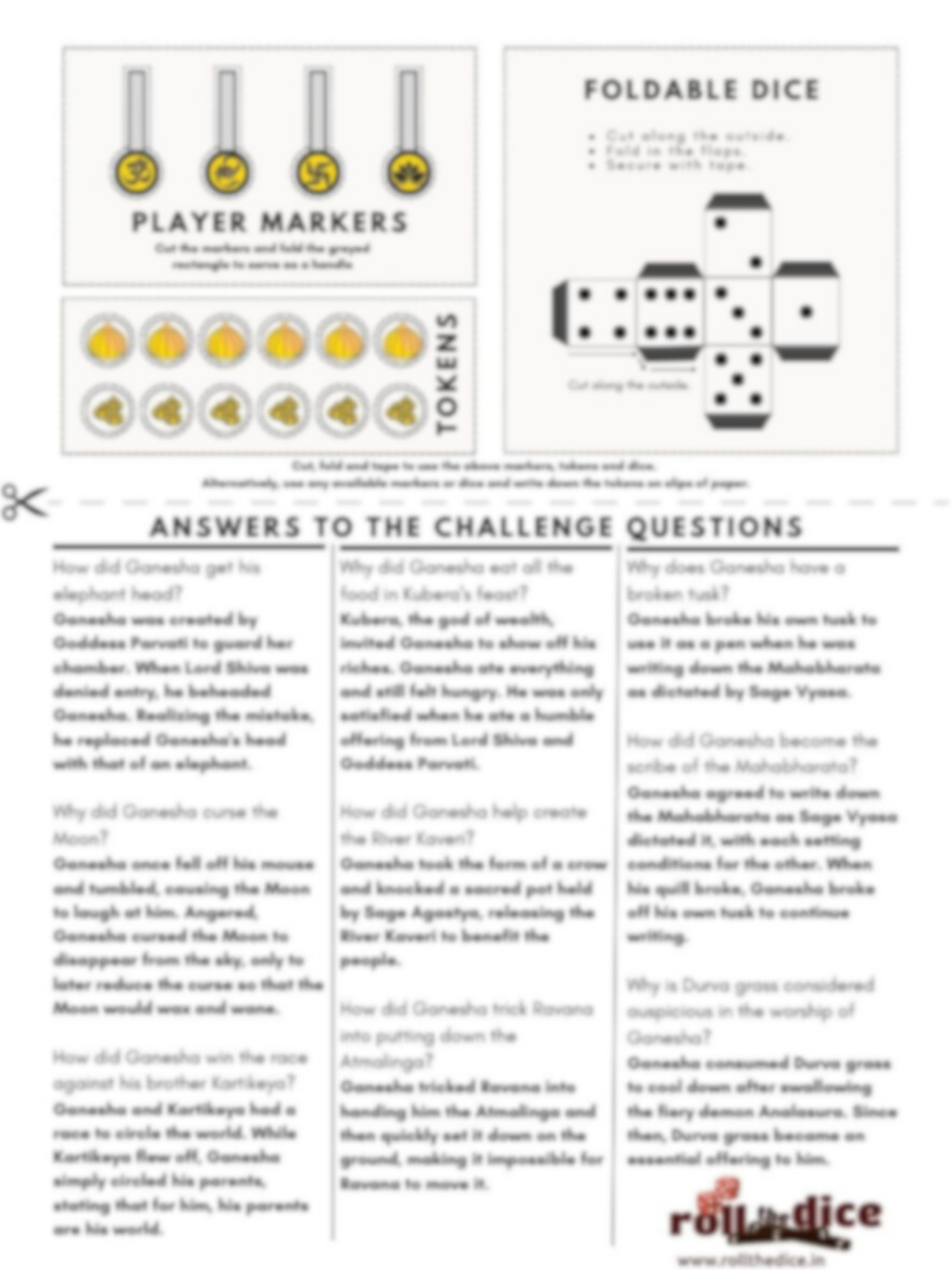 ■ Trivia Cards: A set of 9 trivia cards based on popular stories of Lord Ganesha from the Puranas.